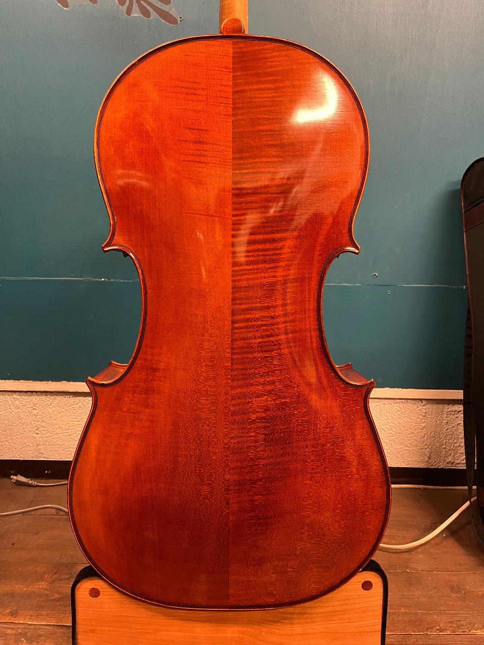 この年代によく日本に入っていたストラドラベルのドイツ製チェロです。良い材料で製作精度も良いです。